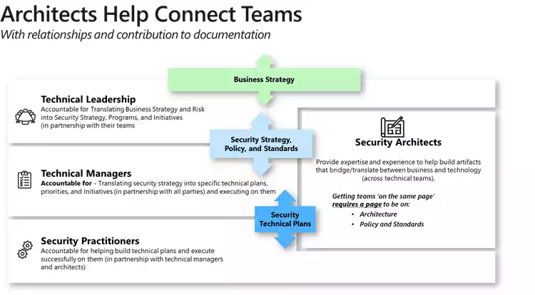 A cybersecurity architect isn’t a lone wolf, though. They continuously collaborate with leaders and practitioners in IT security, privacy, and other roles across an organization to plan and implement a cybersecurity strategy that meets the shared business needs of an organization.